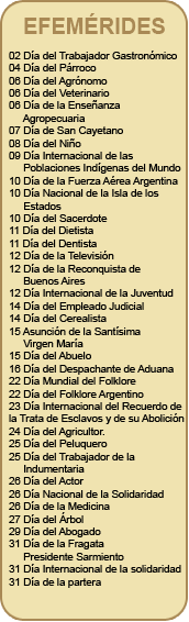 | Flor (quinceañera) | 20 de agosto | |